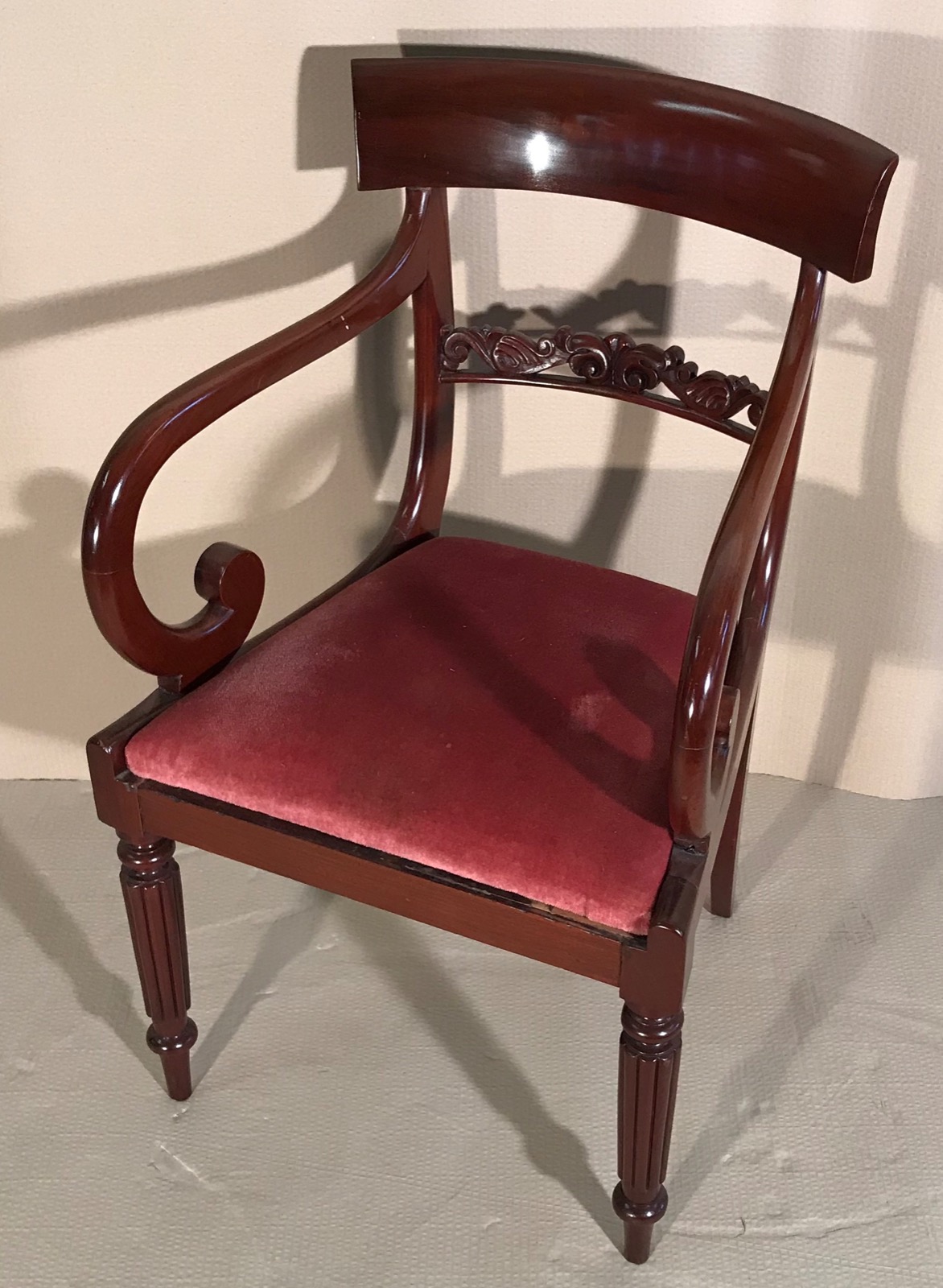 Very good quality Regency Armchair, ideal for use as a desk chair bar back with carved rail sitting on fluted front legs