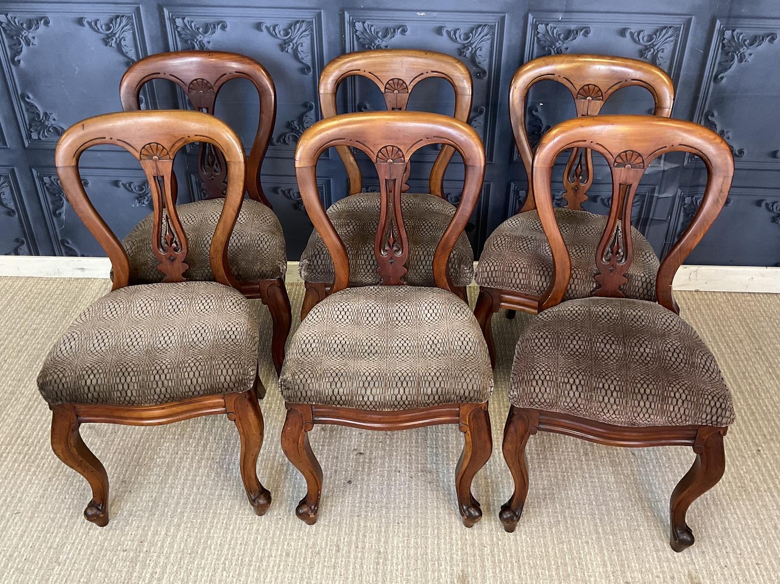 Good quality set of Six Victorian Walnut Dining chairs with spear back, shaped front rail and supported on cabriole legs, drop in pad seats so easy to recover