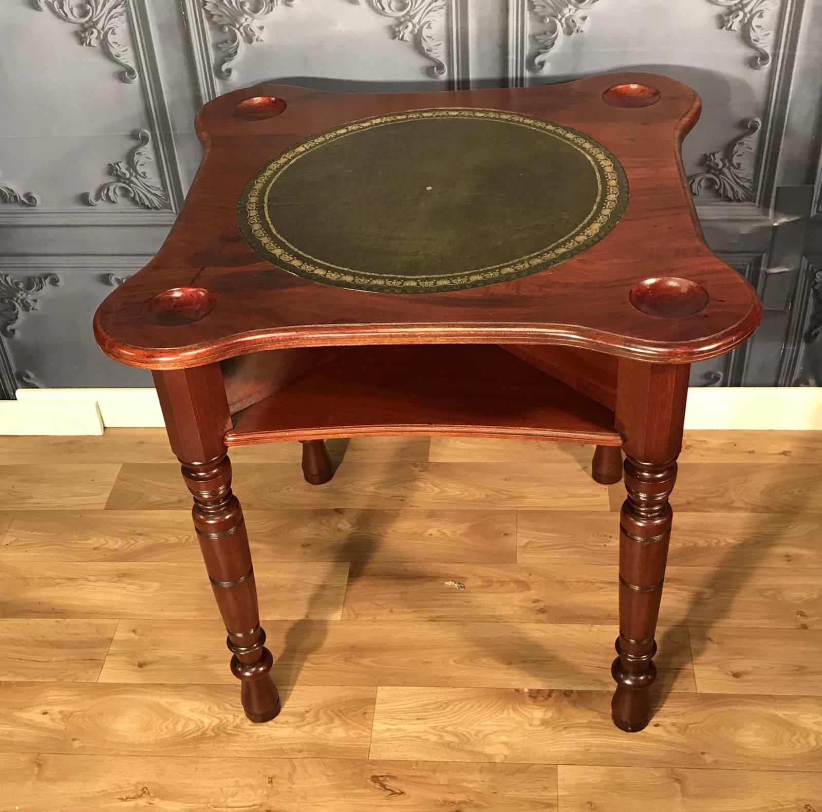 Superb quality Victorian Walnut games table probably made by the well known snooker table manufacturer Riley, recently acquired by ourselves from a local Gentleman’s club we have fitted a new tooled green leather to the playing surface and cleaned and waxed the table using traditional methods, the playing surface has recessed counter holders and fitted to the underside with a shelf and standing on graduated turned legs